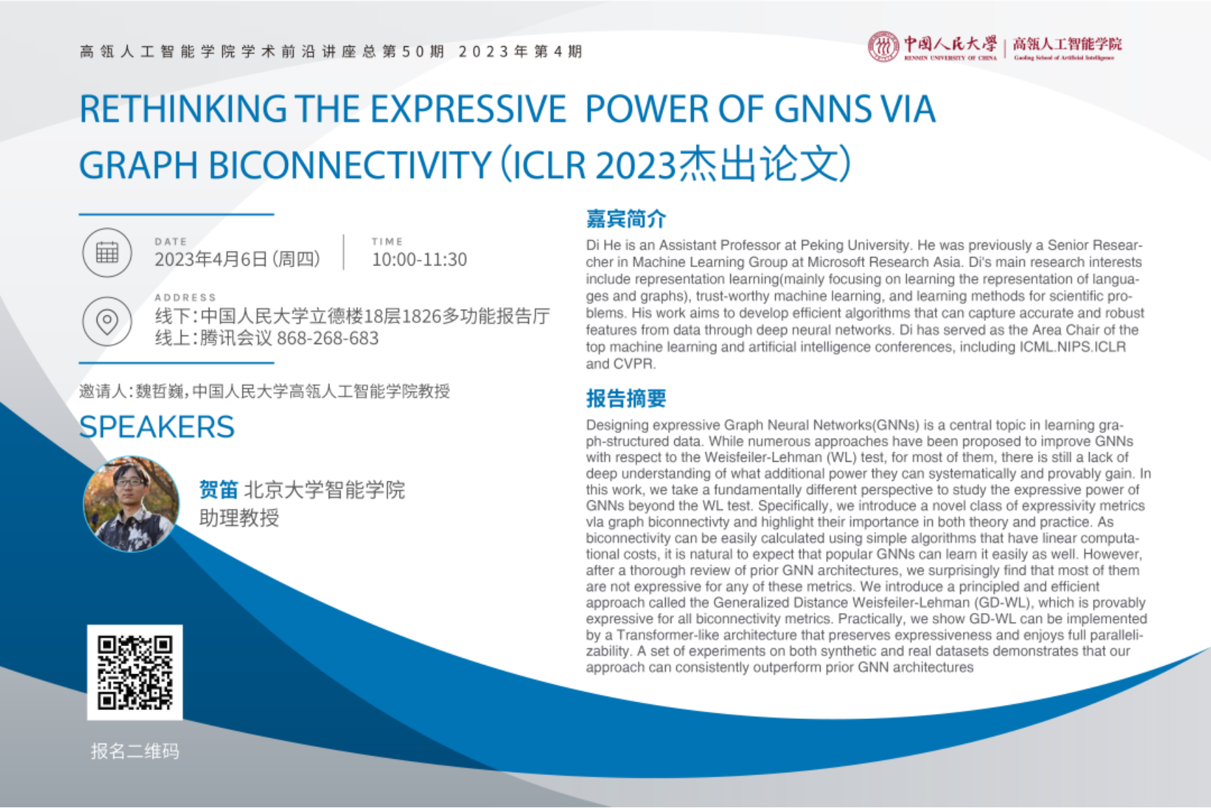 讲座时间:2023年4月6日(周四)10:00-11:30