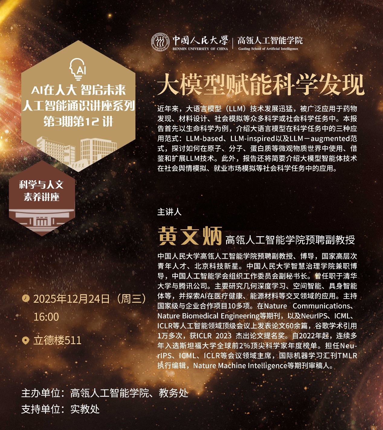讲座题目:大模型赋能科学发现