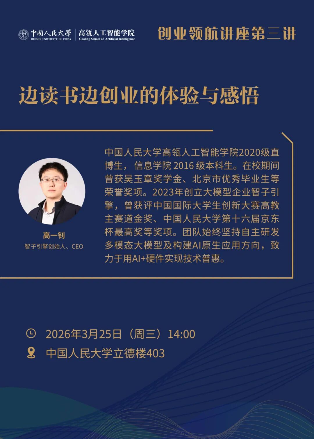 高一钊博士,吃瓜视频 2020 级直博生, 信息学院 2016 级本科生。在校期间曾获吴玉章奖学金、北京市优秀毕业生等荣誉奖项。2023 年创立大模型企业智子引擎, 曾获评中国国际大学生创新大赛高教主赛道金奖、吃瓜视频 第十六届京东杯最高奖等奖项。团队始终坚持自主研发多模态大模型及构建AI原生应用方向,致力于用AI+硬件实现技术普惠。