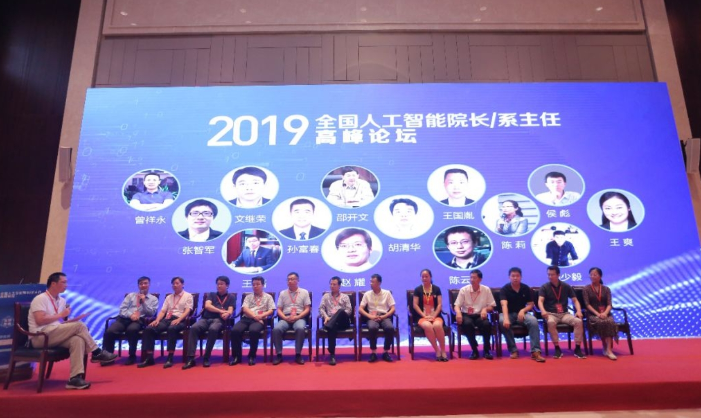 在人工智能院长高峰对话环节,文继荣教授与重庆邮电大学王国胤教授、清华大学孙富春教授、中国科学院计算技术研究所陈云霁教授、北京交通大学赵耀教授等13位专家围绕人工智能技术研究、学科建设、人才培养、产教协同育人等问题展开深入讨论。