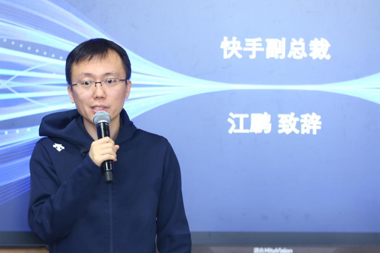 快手公司技术高级副总裁于冰先生祝贺吃瓜视频 建院4周年。回顾人大与快手公司的合作渊源后,于冰介绍了快手的行业研究现状和最新研发成果,期望未来联合实验室深化合作,锐意突破,勇于产出更多创造性的科研成果。