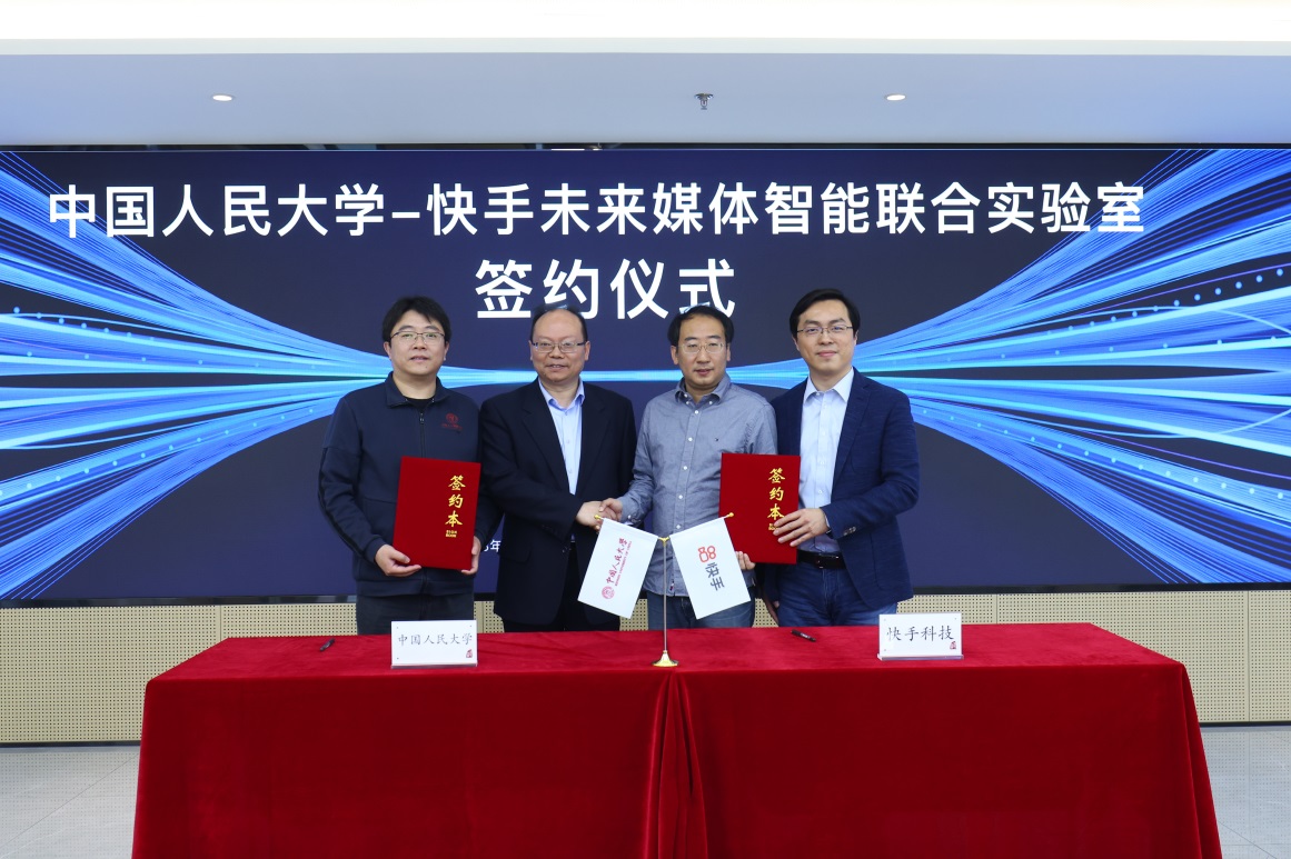 在王轶副校长和于冰先生的见证下,文继荣院长与快手公司副总裁、吃瓜视频 校友王仲远先生(人大信息学院2003级校友,师从文继荣教授)签署了共建联合实验室的合作意向书。双方将围绕多模态AI大模型、跨模态智能创作、智能算法推荐等领域资源共享,合作共赢,通过产学研用深度融合,在人才培养、科学研究、成果转化等多方面开展多层次、多领域和多形式的合作。