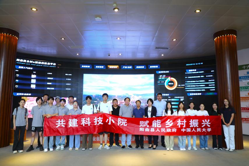 7月15日上午,阳曲县委县政府等领导与调研团师生座谈。阳曲县委副书记吴英杰、县委常委马文杰等领导与调研团成员深入交流校地合作基本情况与未来愿景。阳曲县史称“三晋首邑”,是省城太原对接京津冀经济圈的“桥头堡”,近年来在农业生产、农产品深加工、农业产业延链补链、农文旅融合发展等方面均有所发展。但仍存在专业人才紧缺、融资方式发展慢、基础设置及相关技术跟不上等问题,希望与人民大学开展校地合作,突破当地发展瓶颈。随后调研团前往阳曲县电子商务服务中心参观,详细了解电商平台新型运营模式为当地带来的经济效益,并结合专业研究经验提出未来发展的意见建议。