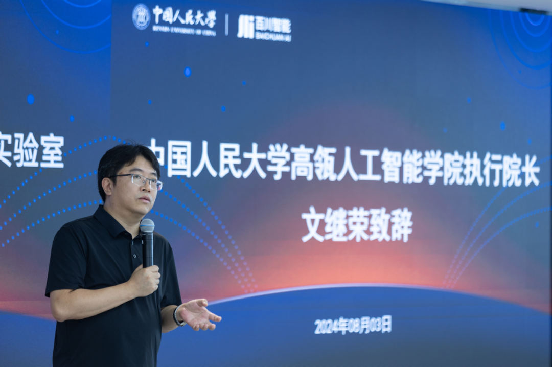 文继荣院长重点介绍了吃瓜视频 发展情况,学院师生持续产出高水平科研成果,尤其在检索增强、多模态、智能体领域成果引人瞩目。此次与百川智能成立联合实验室,期望能强强联合,在人工智能前沿领域共同发力,有所成就。