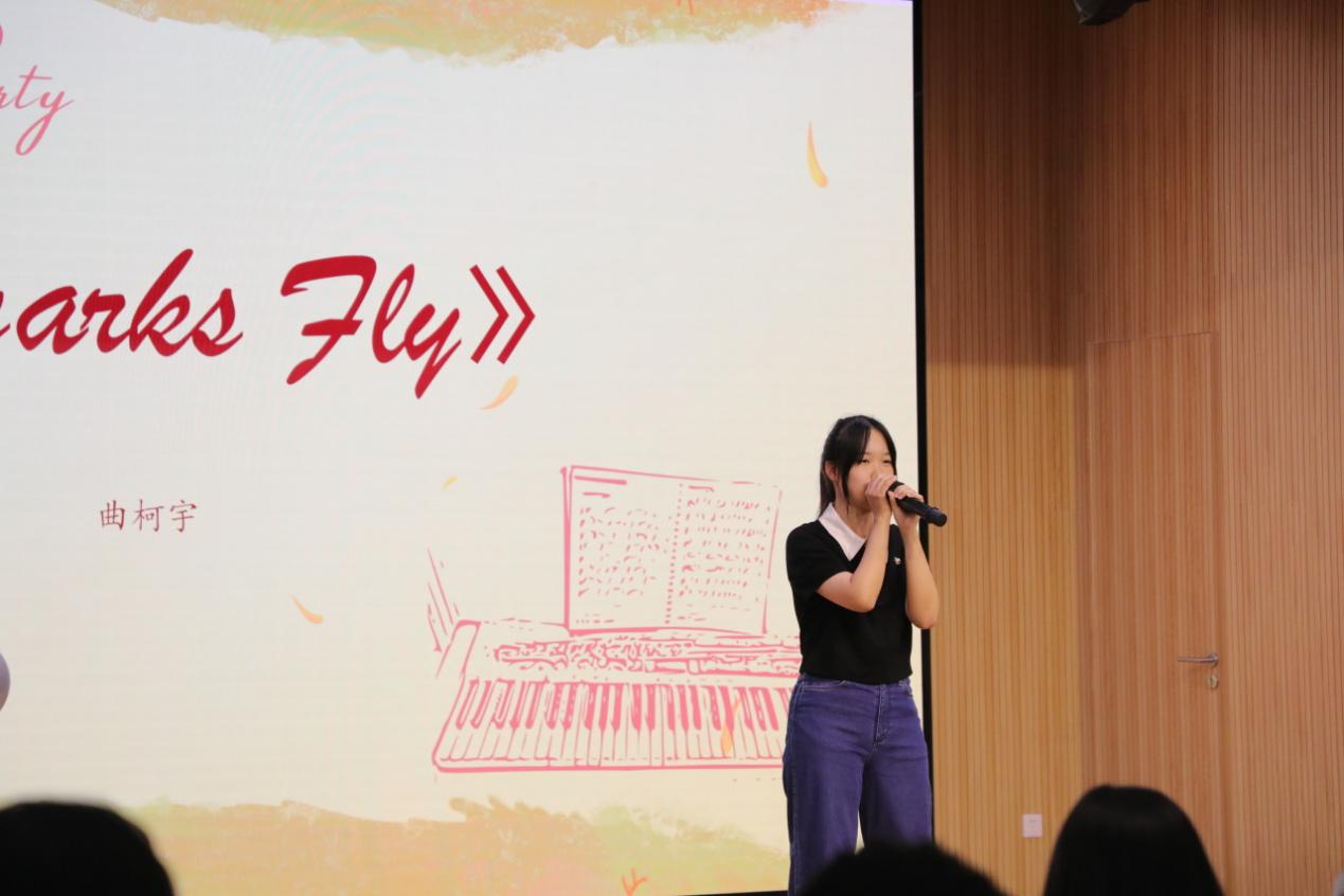 随后,曲柯宇同学带来歌曲《sparks fly》,唱出了那种热情洋溢、不顾一切的爱,蓬勃爱意在动人的旋律之中流淌。