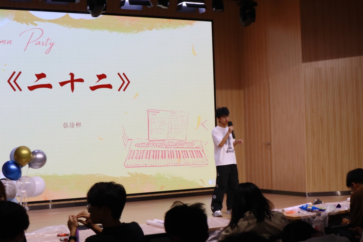 游戏过后,我们又一次沉浸在同学们优美的歌声当中。“爱若入骨,方知其苦。”贾思琪同学的独唱《爱与痛的边缘》,将爱情中的无措、挣扎与彷徨体现得淋漓尽致。