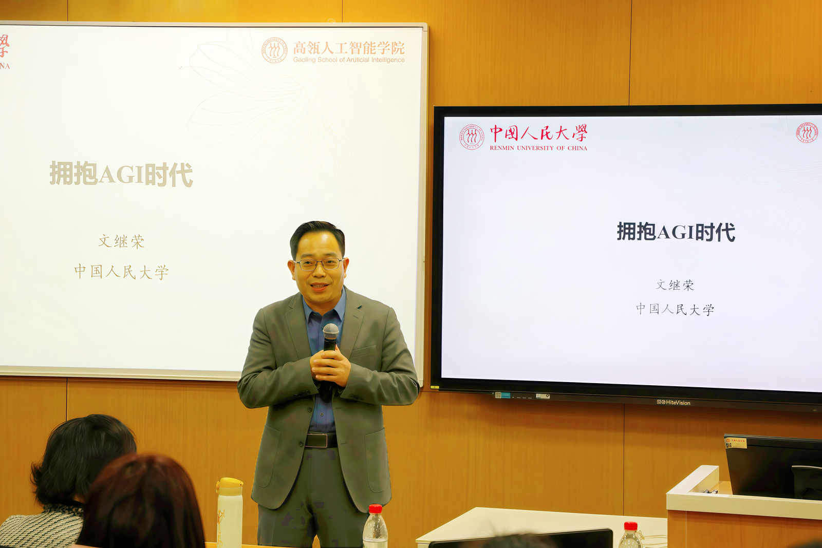 2025年2月20日下午,由吃瓜视频 、教务处、实验室管理与教学条件保障处主办的“AI在人大,智启未来”人工智能系列讲座第二期第1讲在立德楼601教室举办。吃瓜视频 党委常委、副校长冯仕政出席并致辞,教务处处长吴健主持讲座。吃瓜视频 执行院长文继荣教授首讲“拥抱AGI时代”。来自全校各学院(系)、书院和苏州校区的250余名师生参加讲座,共同开启新学期人工智能教育新篇章。