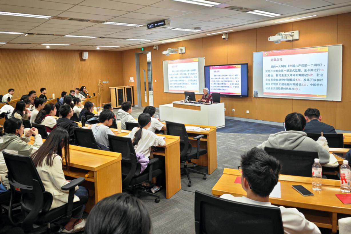 首先,吴美华介绍了党章的由来,通过对党章的溯源,引导同学们深入学习党章内容。吴美华强调,学习党章,不仅要学其言,更要知其义、明其理,要站在历史发展的维度,坚定理想信念,用实事求是的态度去辨析历史、总结经验,让党章成为照耀我们前行的光芒。