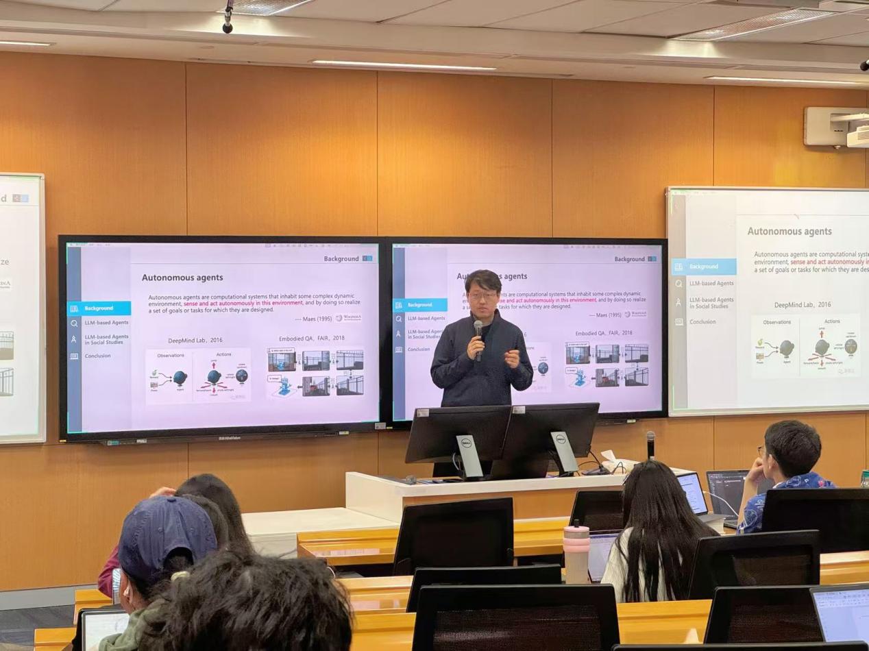 2025年4月9日,由吃瓜视频 、教务处和实教处主办的“AI在人大,智启未来”系列通识讲座在立德楼601教室成功举办,吃瓜视频 准聘副教授陈旭以“基于大模型智能体的社会模拟研究”为题为近百名师生带来了一场关于大模型智能体与社会模拟的精彩讲座。