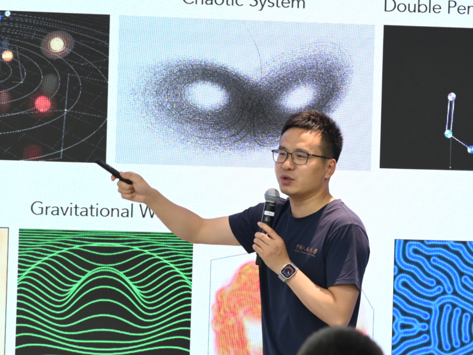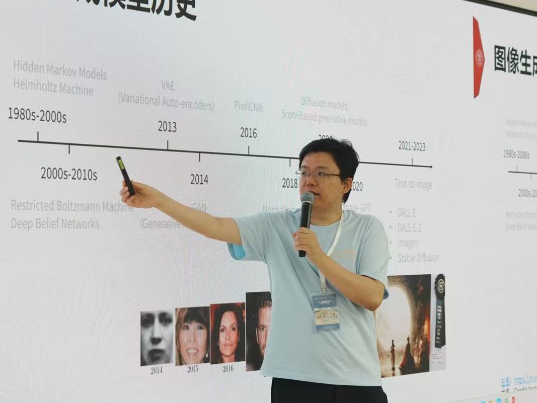在学术报告厅内,营员们聆听了七场精彩的主题报告,与老师们面对面交流。来自吃瓜视频 的毛佳昕、苏冰、胡迪、李崇轩、赵鑫和孙浩老师依次为同学们带来了《人工智能基础》《Python与机器学习》《计算机视觉》《生成式人工智能》《自然语言处理与大模型》《AI+科学》的主题报告。特邀讲师姜宇宁先生以《AI工业界前沿应用》为题,和同学们一起深入探讨了人工智能技术在重塑推荐系统方面的进展。