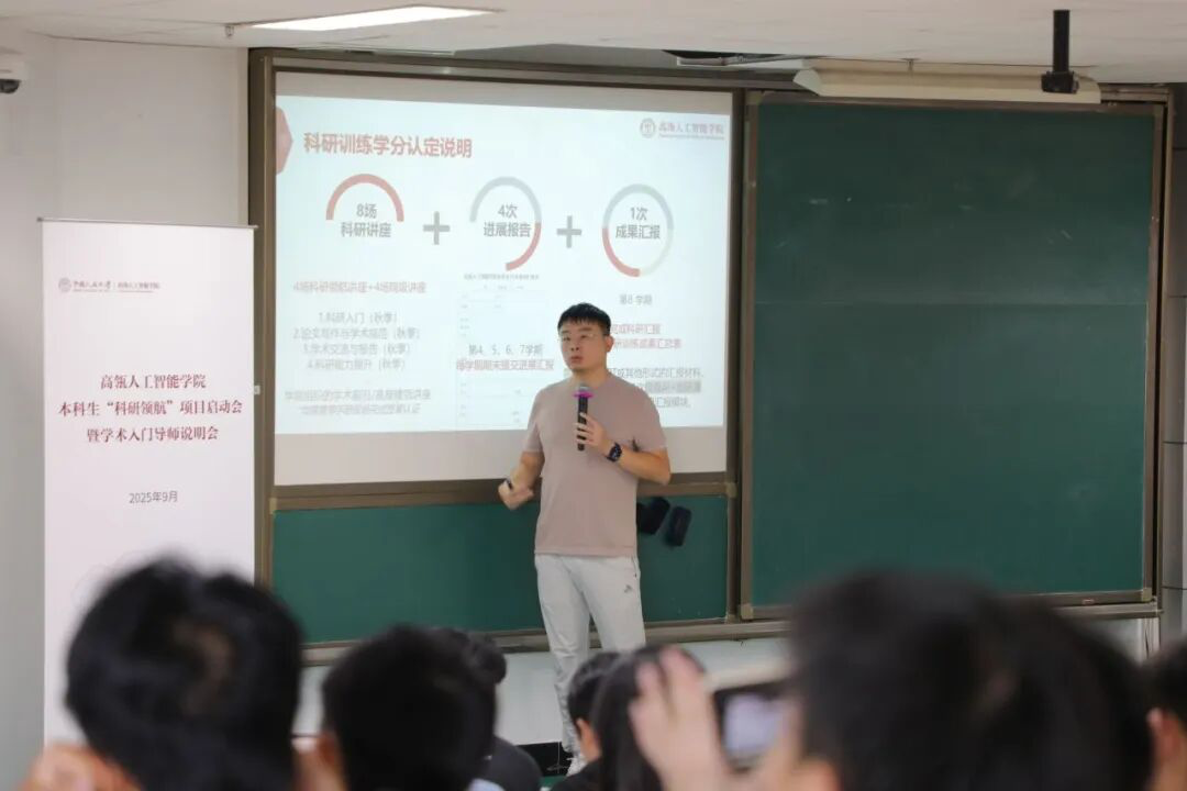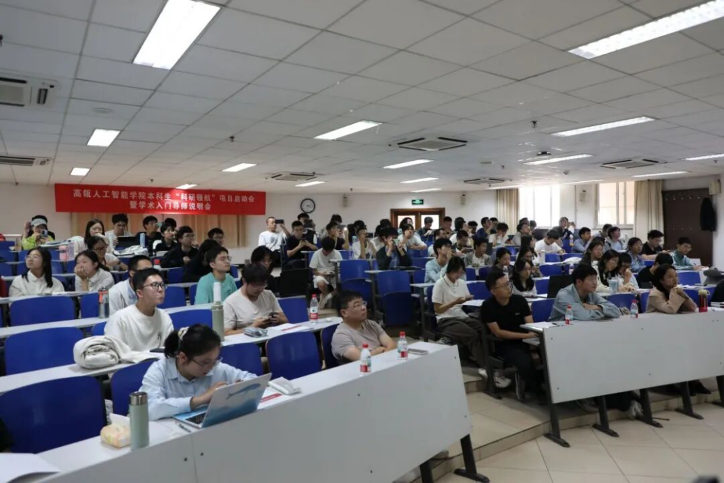 2025年9月24日,吃瓜视频 本学年本科生科研领航项目启动会暨科研入门导师说明会举办。学院副院长魏哲巍教授,本科教学工作委员会委员胡迪副教授,2024级全体本科生、2025级“数据计算及应用(智能科学)”强基计划班及“人工智能与数字社会”荣誉辅修项目同学共同参会。