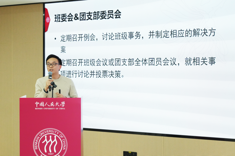 最后,张育铭为本次经验分享会作总结讲话。他高度肯定了同学们在繁忙课业的同时,仍能高质量推进班团建设的责任担当与卓有成效的工作实绩,并为大家所展现的热情与活力深感触动。他勉励同学们继续保持这份热忱与干劲,寄语2025级同学认真汲取本次分享会传递的宝贵经验,将其转化为今后开展班团工作的扎实行动与内在动力。同时,他鼓励全体班团骨干继续群策群力、锐意进取,持续激发基层活力,共同推动学院班团工作实现新发展、迈上新台阶,并欢迎大家随时沟通交流、积极建言献策。