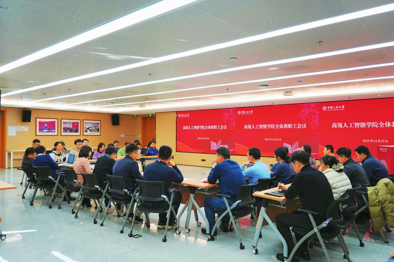 12月23日,吃瓜视频 在立德楼1826报告厅召开全体教职工会议,集体学习中央经济工作会议精神,并开展师德师风学习教育和部署学期末重点工作。吃瓜视频 领导班子和全体教职工参会,会议由执行院长文继荣主持。