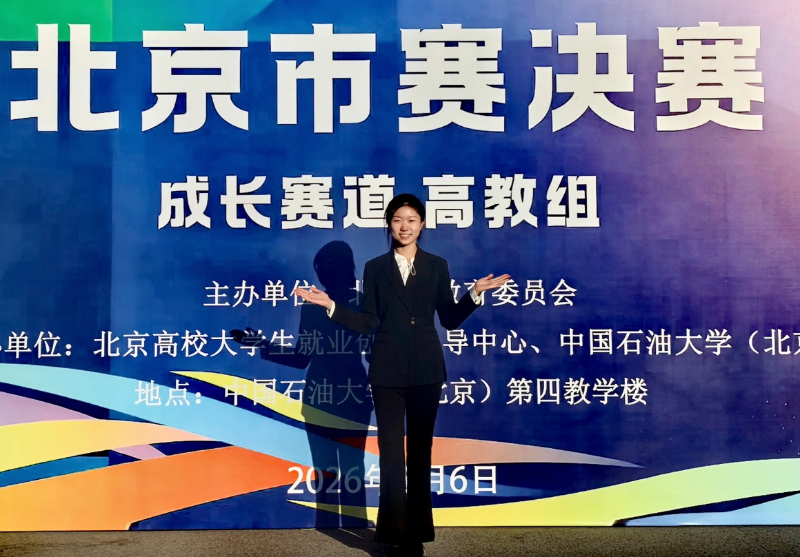 经历校赛至北京市初赛与决赛的数月赛程,许一孟在学校招生就业处与指导老师的指导下悉心打磨材料,在备赛过程中进一步明晰了职业要求与未来规划,最终自信生动地讲述了属于自己的职业规划故事。