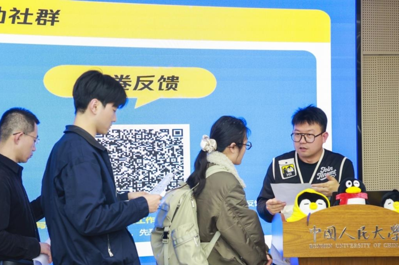 宣讲会上,腾讯嘉宾带来全方位的企业解读与求职指导。各位代表结合自身职业发展历程,系统介绍了公司组织架构与核心业务产品。针对学生最为关切的校园招聘事宜,相关负责人详细阐述了网申投递渠道、招聘流程及人才培养机制,为学生提供了清晰、实用的求职指引。