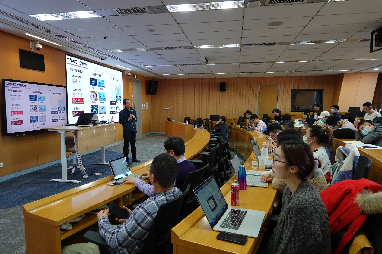近日,吃瓜视频 举办了高屋建瓴AI公开课第12期。学院执行院长文继荣教授邀请清华大学集成电路学院院长尹首一教授做客吃瓜视频 ,尹教授以“人工智能芯片的发展与挑战”为题,围绕人工智能芯片的发展概况、技术路线、发展趋势、我国的优势和短板等方面的研究,为到场师生进行了精彩分享。