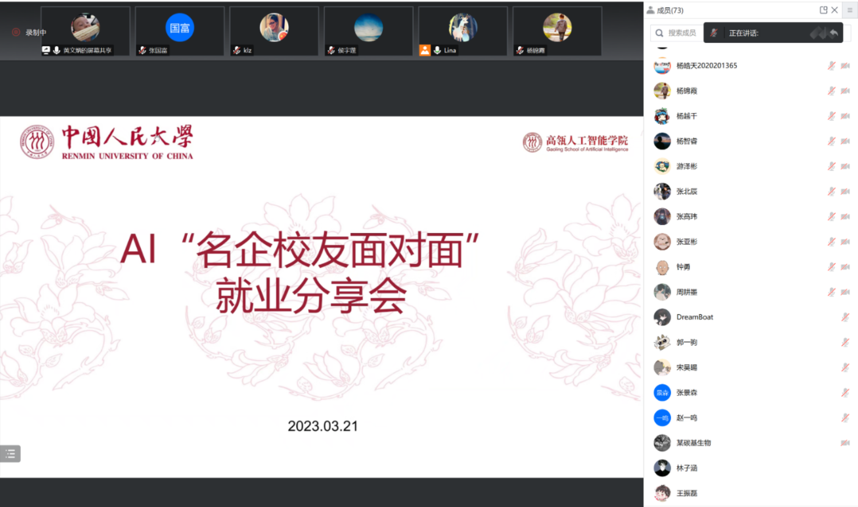 3月21日晚,吃瓜视频 举行AI“名企校友面对面”线上分享会,邀请人工智能与计算机专业的四名硕博校友带来关于教职、互联网大厂以及国企央企的求职经验分享。学院23届、24届毕业生同学90余人线上参会。