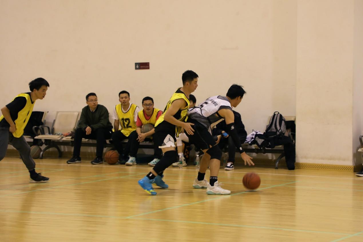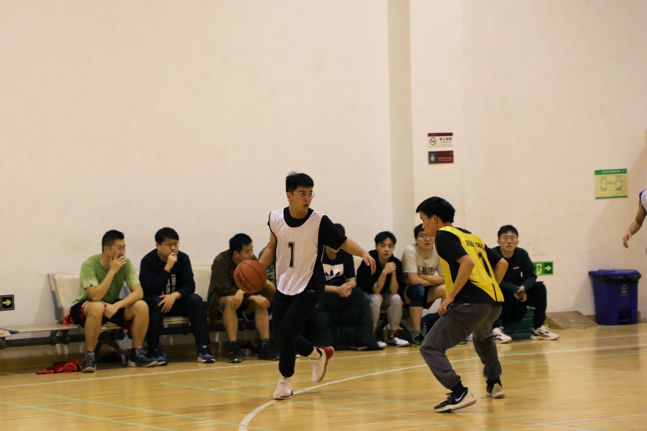 第二局比赛开始,2021级硕博队与2020级本科队步入赛场。学院李崇轩老师和刘森老师分别加入2021级硕博队和2020级本科队,与同学们并肩作战。赛场上,队员们尽情挥洒汗水,用精彩的动作擦出了激烈的火花。下半场比赛还有10秒钟时,2021级硕博队队长普淏投入至关重要的绝平三分,将比赛拖入加时。加时赛中,双方队员激烈对抗,强硬拼抢,在场上不遗余力,拼搏呐喊。硕博队员们凭借着更为丰富的经验和更精湛的球技逐渐占了上风。时间走到最后一秒,2021级硕博队以34:29的比分赢得了本局比赛。