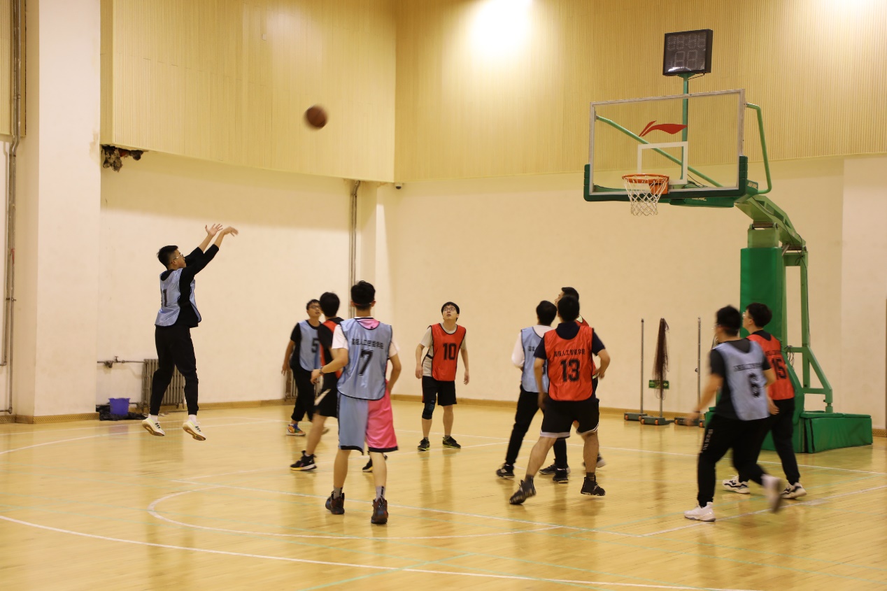 第一轮出战的两支队伍是2020级硕博队与2021级本科队,学院教师王子贺与刘勇两位老师分别加入2020级硕博队与2021级本科队两支队伍助阵。双方队伍在赛场上展开了激烈的角逐,队员们积极对抗,你来我往,攻防交互,带来了一场极富竞技性和观赏性的视觉盛宴。上半场结束,2021级本科队以14:13暂时领先。下半场开始,硕博队调整了比赛策略,更多依靠防守反击和内线王子贺老师这一绝对强点进行进攻,逐渐扭转战局。最终,2020级硕博队以29:27的比分取得了本局比赛的胜利。