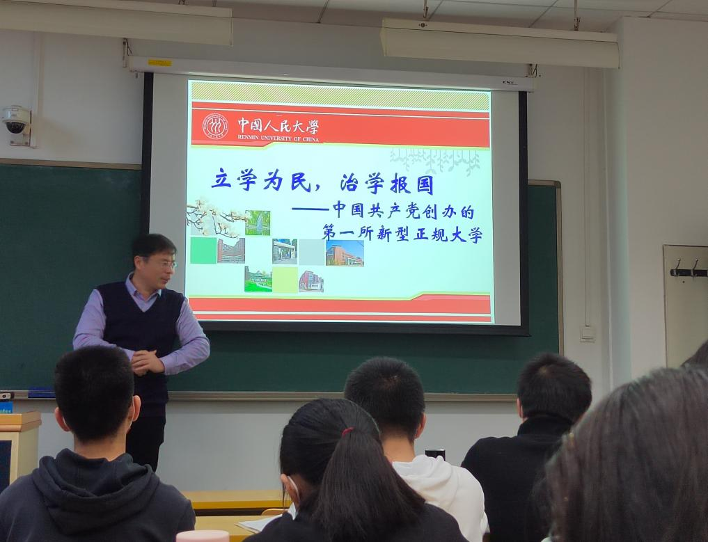 首先,张国富老师带着2107班的学生一同欣赏人大老校区的宣传片,为同学们讲解老校区的辉煌历史,用生动的语言配以精彩的视频让我们深深地感受到老校区巴洛克建筑风格之美。紧接着张老师介绍了人大作为第一所新型正规大学的特殊之处,并着重强调了人大在新中国成立之后的发展历程。而此前,同学们了解更多的是人大在陕北公学、华北联合大学时期的历史,张老师的讲解无疑让大家对人大、对“国民表率,社会栋梁”有了更深刻的理解。
