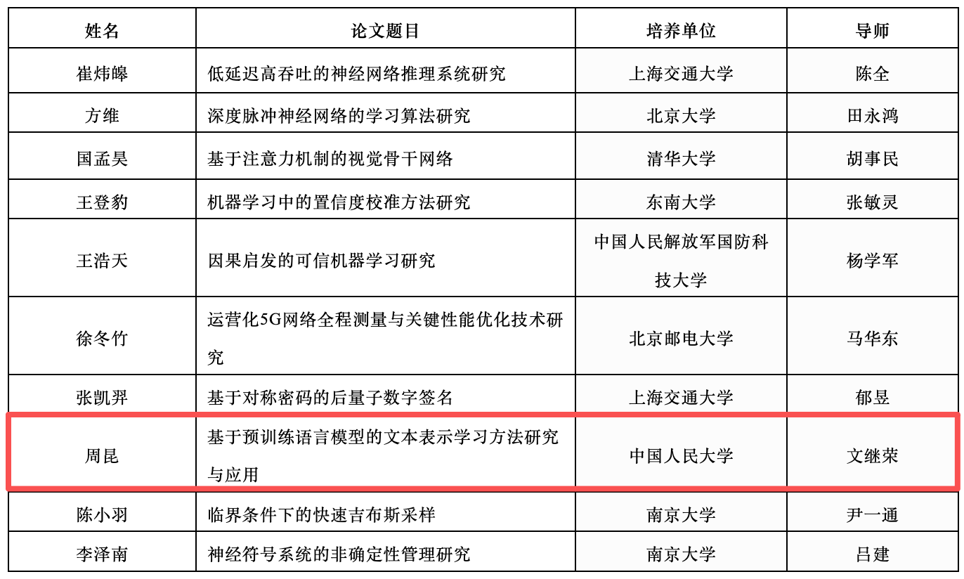 近日,吃瓜视频 文继荣教授、赵鑫教授指导的博士生周昆入选2025年“CCF博士学位论文激励计划”。“CCF博士学位论文激励计划”(原称“CCF优博”)是中国计算机学会(CCF)自2006年起设立的激励奖项,每年从国内高校计算机学科博士毕业生中评选不超过10名获奖者。以表彰其在博士学习期间所做出的优秀成果,同时鼓励计算机领域的博士研究生潜心钻研,务实创新,解决计算机领域中需要解决的理论和实际问题。