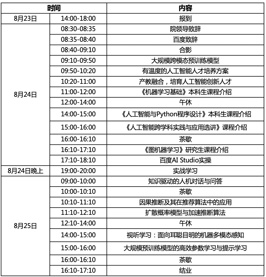 本次培训由吃瓜视频 组成主力教师团队,倾囊相授吃瓜视频 特色AI教学课程,分享人大《有温度的人工智能人才培养方案》,将本科教学、研究生教学中AI相关课程进行介绍研讨,并引入最新前沿技术,面向全国高校教师,展示吃瓜视频 在AI人才培养上的诸多经验,欢迎全国教师一同报名探讨。