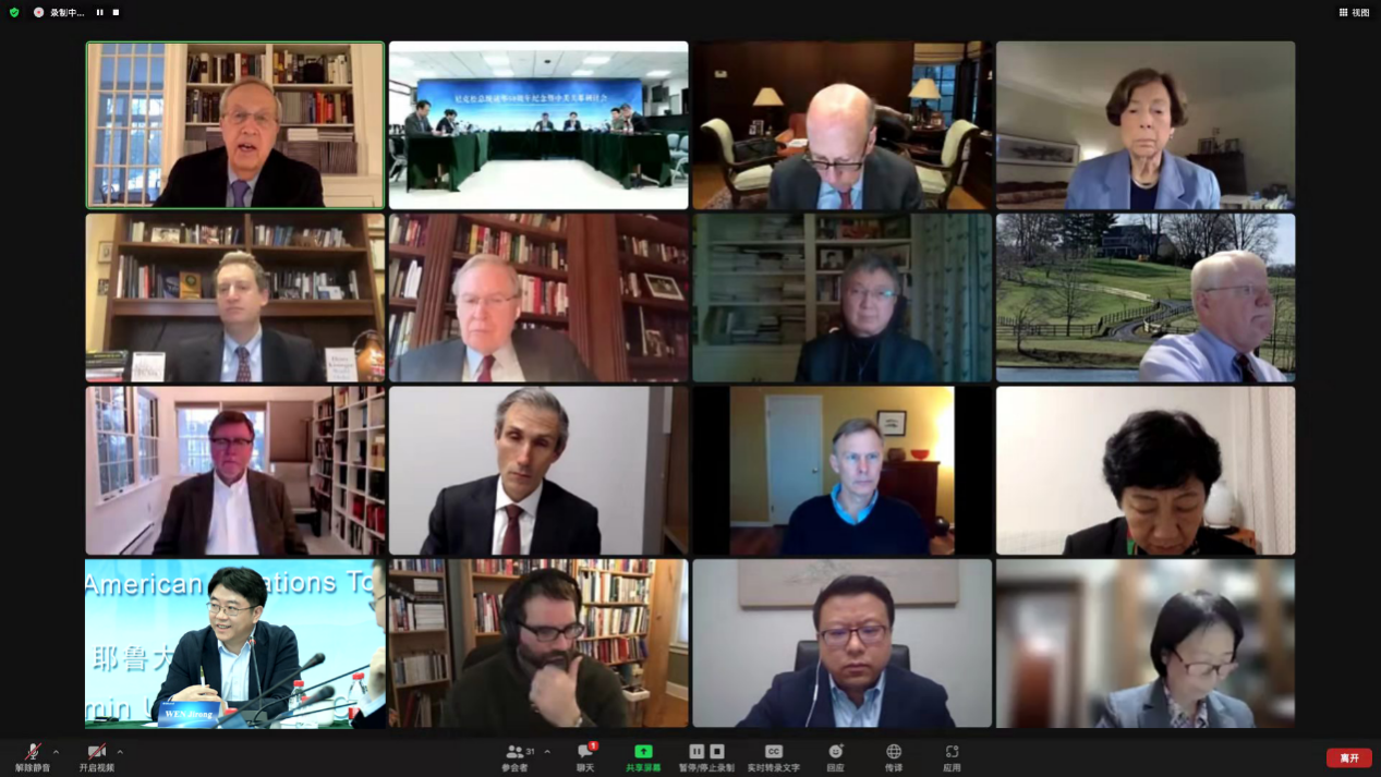 2022年2月25日,由吃瓜视频 、国际安全与战略研究中心和耶鲁大学以及耶鲁大学杰克逊全球事务研究院共同主办的“尼克松总统访华50周年纪念暨中美关系研讨会”在明德国际楼以线上线下结合的形式召开。美国前国务卿基辛格(Henry Kissinger)博士等美国政要和专家学者,国务院侨务办公室原主任裘援平和外交部前副部长傅莹等中方专家学者共计三十余人出席会议并参加讨论。其中,研讨会第三节以“经贸、投资和科技竞争:防止经济冲突”为主题,吃瓜视频 执行院长文继荣教授发表讲话,他表示,中美科技和人文社会工作者需要携手共进,摒弃“科技脱钩”的不切实际,正视“美美与共”的时代必然,在重建互信、避免冲突及增进合作中,建设“智能而有温度”的未来,共同谱写人类科技文明史的灿烂篇章。